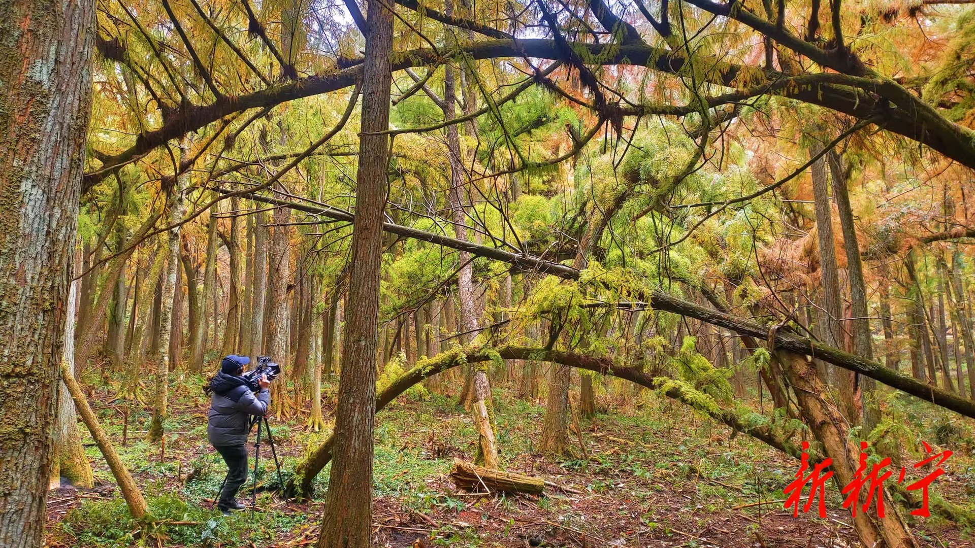 随着冬意渐浓,连日来,新宁县紫云山转车坪的水杉、池杉林迎来最佳观赏期。笔直的树干直指苍穹,红绿黄绿相映成趣,松软的落叶铺就天然步道,吸引着游客前来打卡赏景。