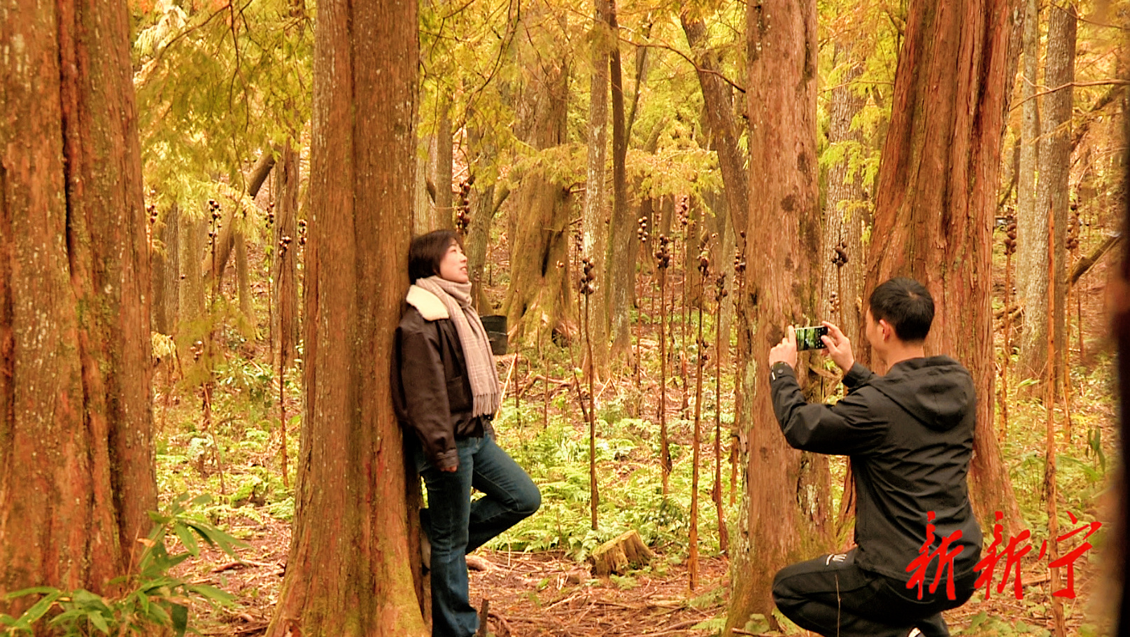 游客胡玲玲说:“小时候总觉得杉林是墨绿墨绿的,带点高冷,这儿的杉林是金黄夺目,红绿相间,是会呼吸的颜色,哇,太美了!”