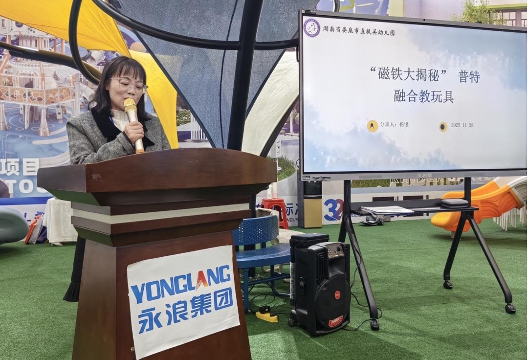 11月27日至29日,娄底市直机关幼儿园杨银、彭心蕊两位老师设计的普特融合玩教具《磁铁大揭秘》,在众多作品中脱颖而出,在温州举办的全国学前教育装备创新发展活动主会场完成现场展示。