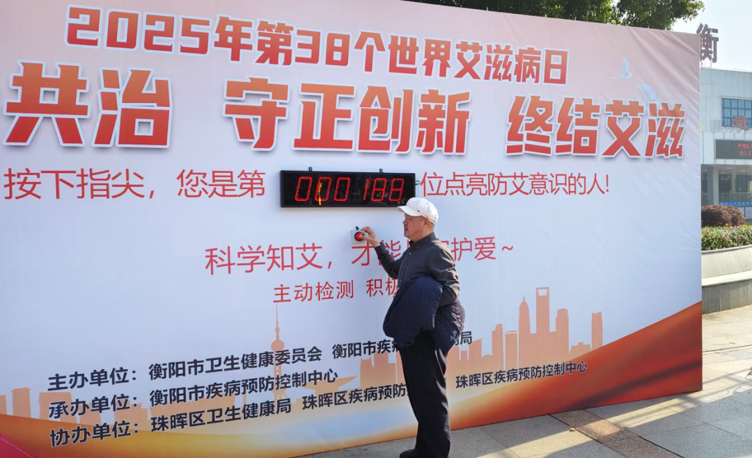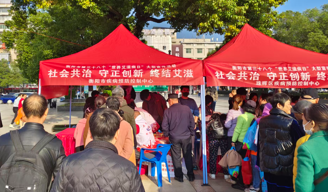 大众卫生报·新湖南客户端12月2日讯(通讯员 王先玲)12月1日上午,第38个“世界艾滋病日”当天,衡阳市火车站广场人声鼎沸、暖意融融,由衡阳市卫健委、衡阳市疾控局主办,衡阳市疾控中心承办的以“社会共治,守正创新,终结艾滋”为主题的大型防艾宣传活动在此隆重举行。活动通过多形式、接地气的科普宣传,将防艾知识与人文关怀精准送达市民身边,让“知艾防艾、科学防护”的理念深入人心。