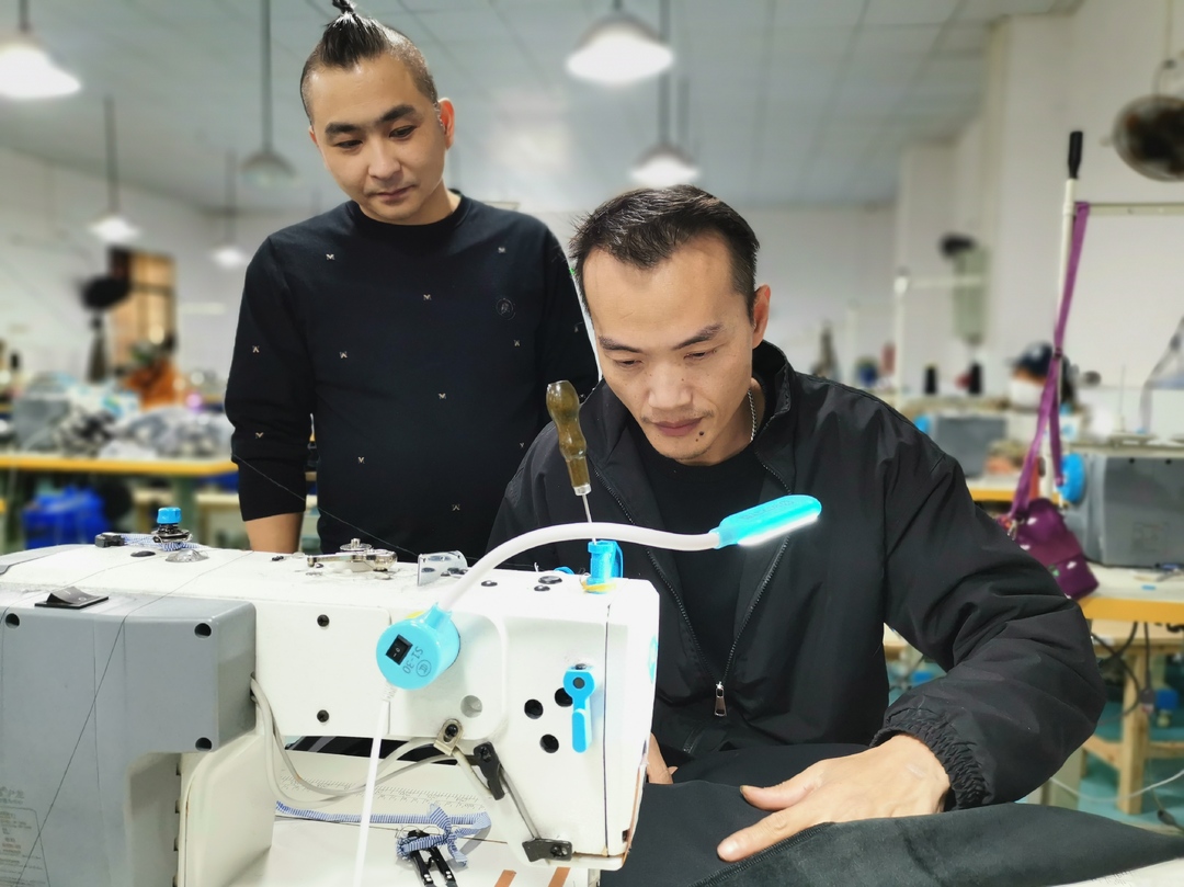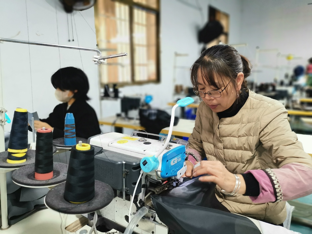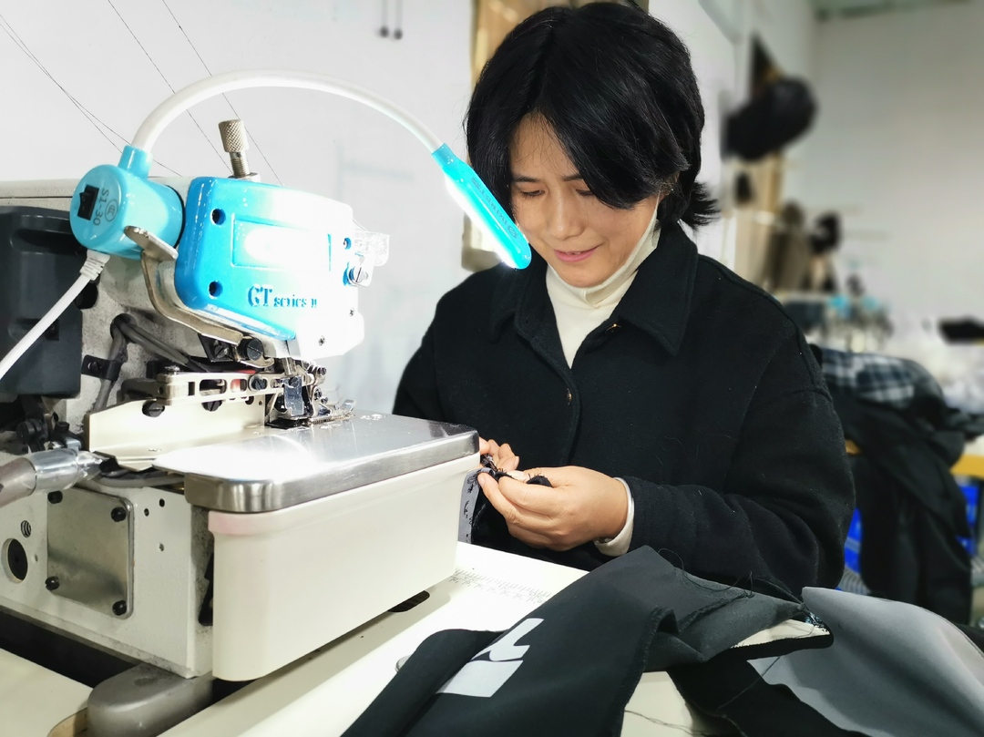 车间另一角,女工张海正忙碌地操作着缝纫机,短发利落,气质干练,透着一股能干劲儿。她双手在布料间上下翻飞,如同灵巧的蝴蝶。“现在好了,厂子开到家门口,走路上班也就十来分钟。能赚钱,也能照顾小孩。”说起现在,她脸上洋溢着满足的笑容,“一个月稳定能拿三千多,手头宽裕了,能给孩子买书,给老人添件新衣,心里特别踏实,在家说话都硬气!”车间里像她这样的女工,有30多人,曾经为了家而留守,如今一双手,撑起了家的一角。