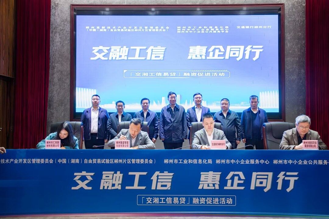 在政银企签约环节,自贸区郴州片区、高新区与交通银行郴州分行签订战略合作协议,双方将围绕片区企业发展、项目建设等领域深化合作,实现资源共享、优势互补;同时,交通银行郴州分行分别与郴州市汇创新材料有限公司、郴州集益智能科技有限公司、郴州市鹏琨环保服务有限公司3家企业签订融资合作协议,为企业扩大生产规模、提升创新能力提供专项金融支持。