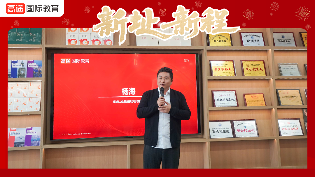 高途LL校区长沙分校校长杨海围绕教育发展趋势、校企合作、青年成长等话题展开了分享,并表示对高途留学长沙分公司未来发展满怀期待。