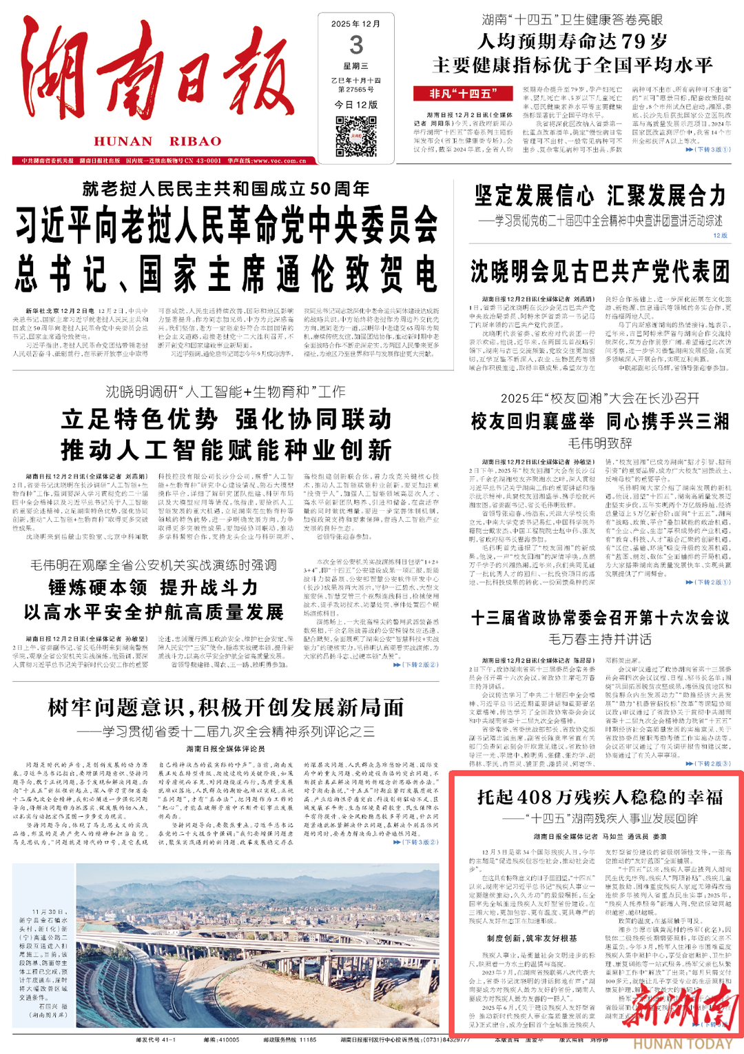 湖南聚焦残疾人急难愁盼,推动关爱服务从“保基本”向“高品质”跃升,让温暖可感、幸福可及——
