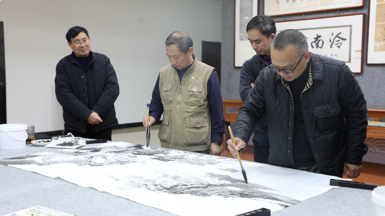 晚上,交流笔会举行。文艺创作者们将白天采风沉淀的灵感与感悟,尽数化作书画创作的鲜活笔触。