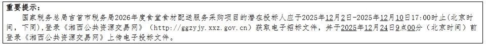 原链接:[公开招标]国家税务总局吉首市税务局2026年度食堂食材配送服务采购项目第三包[正在下载]
