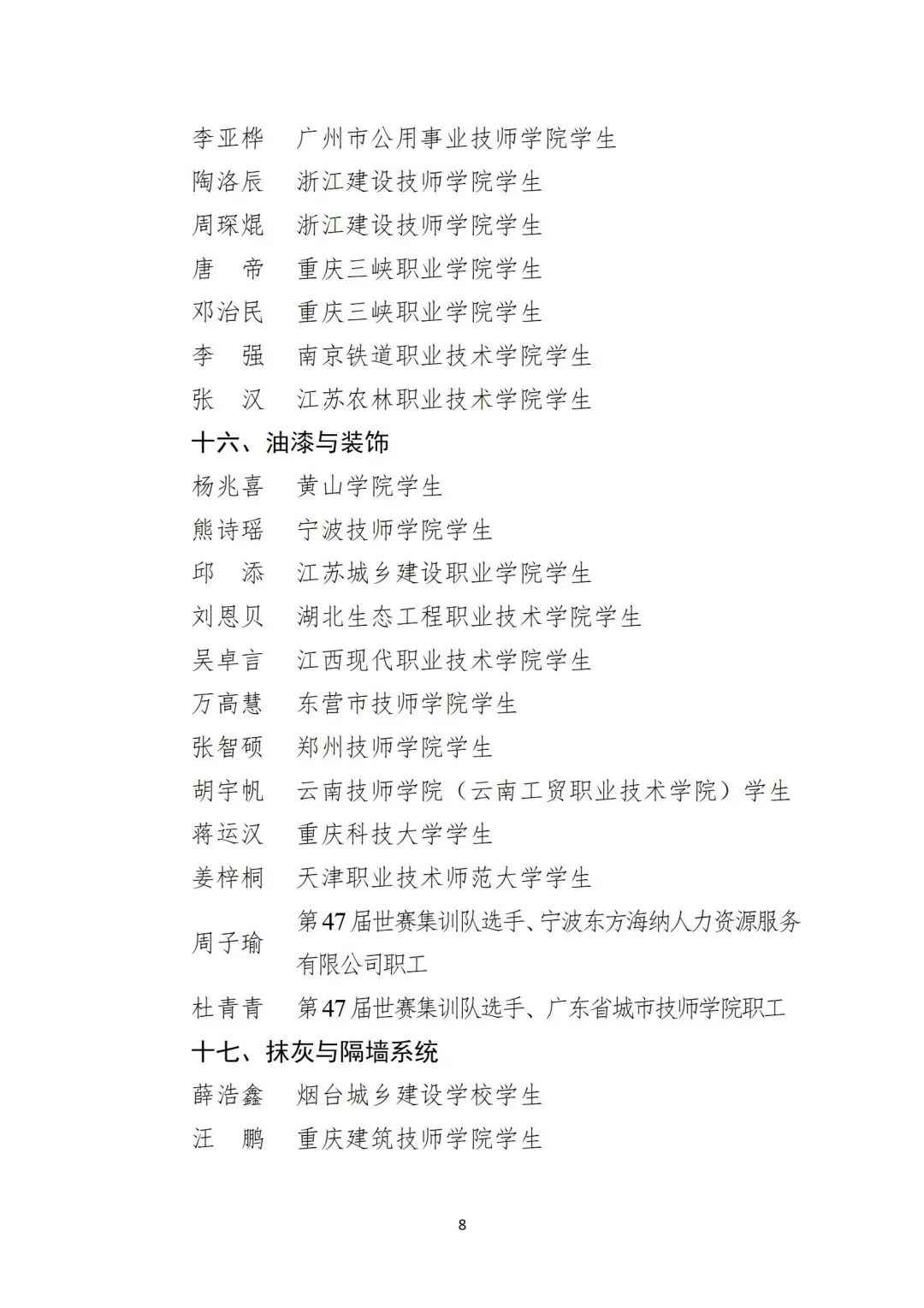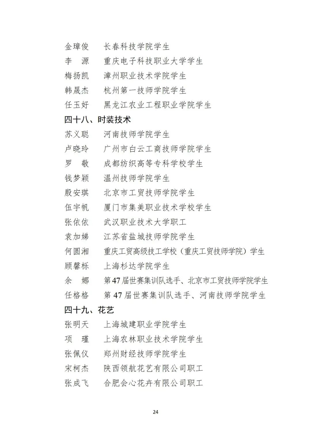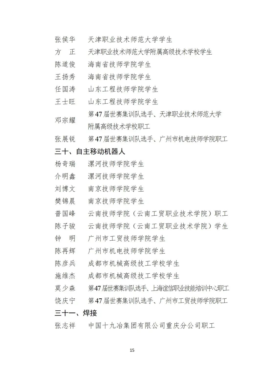关于公布第48届世界技能大赛