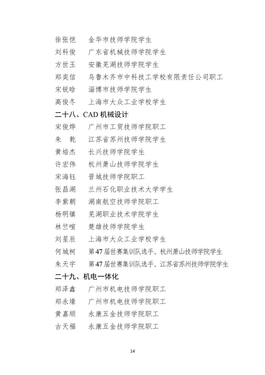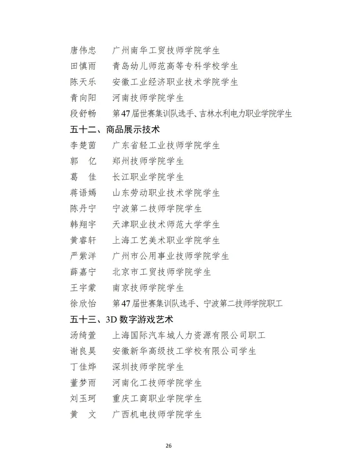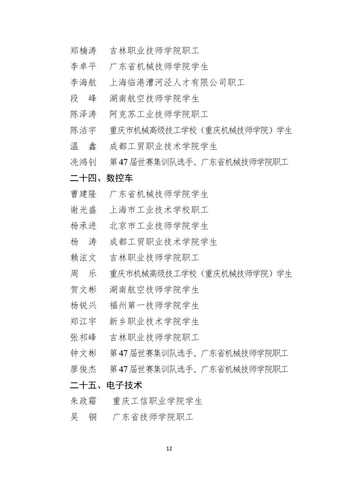 关于公布第48届世界技能大赛