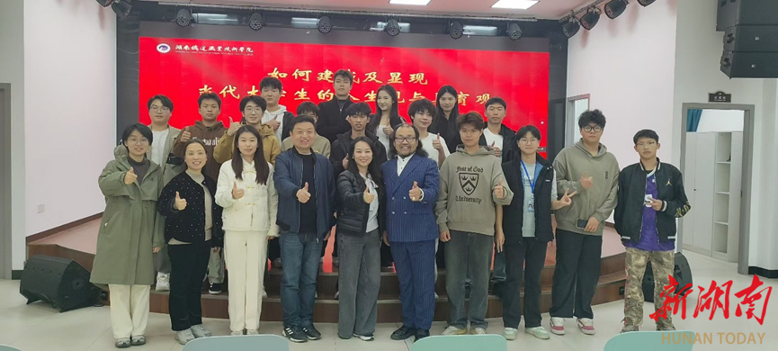湖南日报·新湖南客户端12月5日讯(通讯员 唐笑宇 陈佑 熊蕾)为进一步加强新时代大学生美育工作,提升学生审美素养与人文情怀,12月1日湖南铁道职业技术学院特邀美育技能大师杨圣长在云龙西校区演艺厅,为同学们带来一场题为《如何建成及显现当代大学生的人生观与美育观》的专题讲座。该校素质教育学院相关负责人及全体美育教师参加本次活动,与在场学生共同聆听交流。