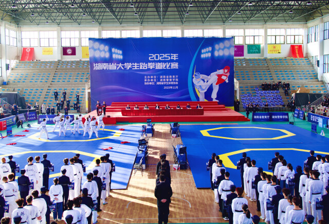 这是12月初落幕的2025年湖南省大学生跆拳道比赛上的精彩一幕。本届赛事汇聚了全省56所高校的982名运动健儿,在5天的激烈角逐中,湖南警察学院、湖南理工学院、湖南科技大学、湖南司法警官职业学院分别摘得竞技团体甲、乙、丙、丁组总分桂冠;品势团体比赛同样竞争激烈,湖南大学、湖南涉外经济学院、湖南科技大学、湖南环境生物职业技术学院分别在各自组别夺冠。