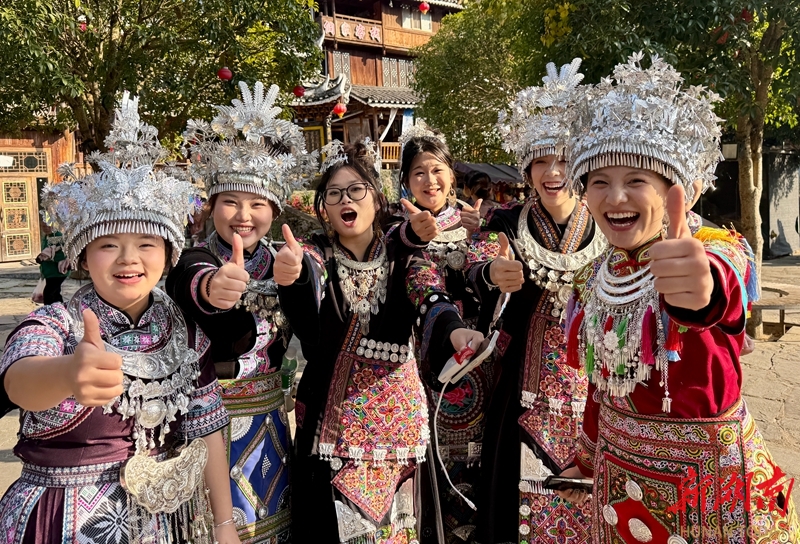 12月6日,通道侗族自治县皇都侗文化村热闹非凡,身着民族盛装的游客沉浸在浓郁的节日氛围中。当天,“2025皇都·侗年节”启动,村民、游客齐聚“醉美侗寨”,共赴这场绚丽多彩的文化盛宴,欢度侗年节。陈俊宇 摄(湖南图片库)