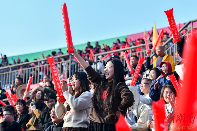 12月6日,球迷在加油助威。当天,2025湘超联赛第十三轮比赛,娄底队主场对阵湘西队,最终以3比0战胜对手。吴永华 摄(湖南图片库)