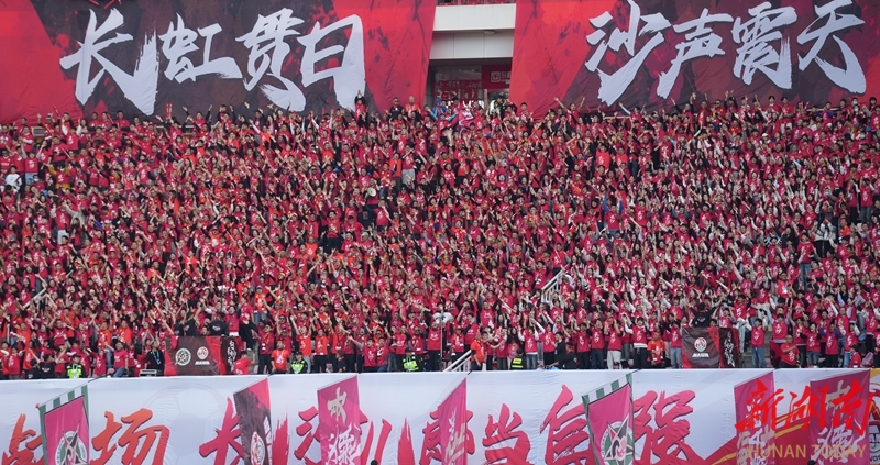 12月6日,球迷在加油助威。当天,2025湘超联赛第十三轮比赛,长沙队主场对阵常德队,最终以2比1战胜对手。邹麟 摄(湖南图片库)