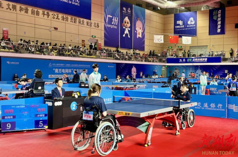 新湖南客户端12月7日讯(记者 黄伊婷 通讯员 裴爱红)12月7日,第十二届残运会乒乓球项目在广州体育职业技术学院迎来第三个比赛日。在当天进行的TT2级女子团体决赛中,湖南代表队王力、李霞、阎海英以3:0的大比分战胜吉林队,荣获团体铜牌。