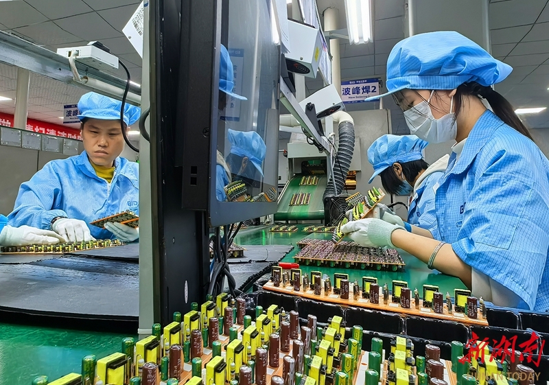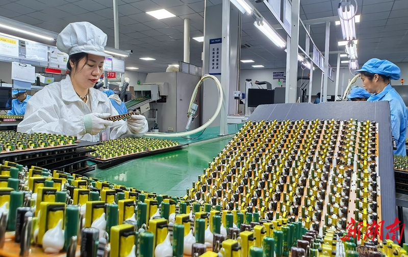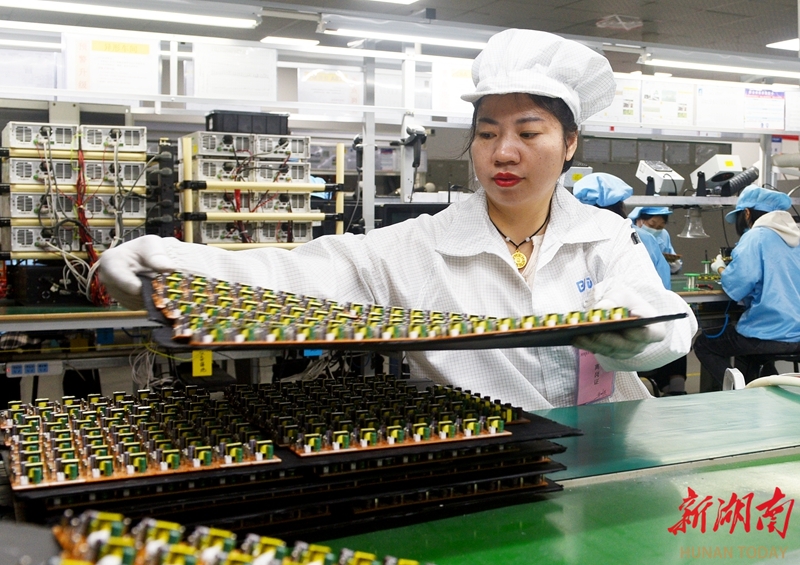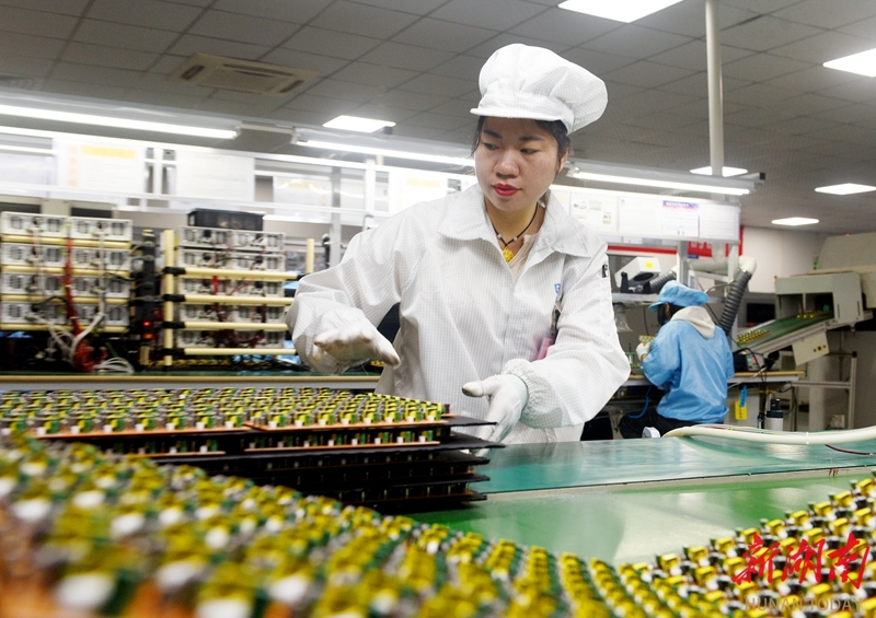 12月7日,嘉禾高新区某公司生产车间,工人在加工电子配件。临近年底,该县各企业紧盯全年目标任务,开足马力抢效率、忙生产、保交付,奋力实现“全年红”目标。黄春涛 摄(湖南图片库)