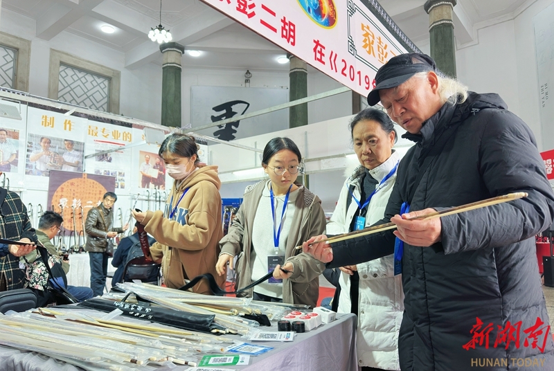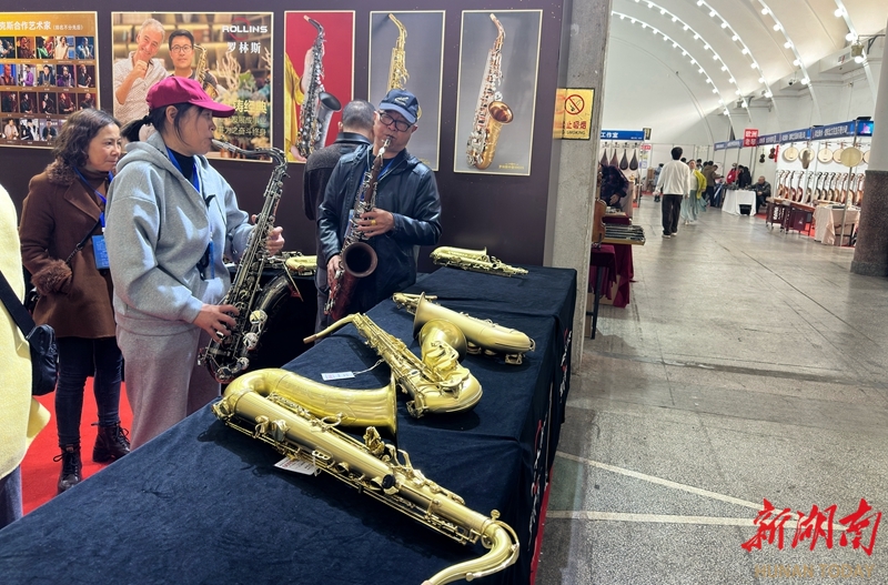 12月7日,消费者在湖南省展览馆举办的2025第六届中部湖南(国际)乐器展览会现场选购商品。本届展会将持续至本月9日,免费向公众开放。来自全国各地的乐器厂商汇聚一堂,提琴、吉他、萨克斯、二胡、琵琶等常见乐器品种齐全。湖南日报全媒体记者 徐行 摄