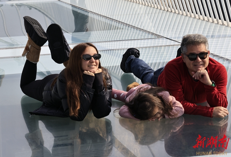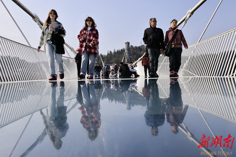 12月7日,游客在张家界大峡谷景区体验高空玻璃桥。冬日的大峡谷阳光明媚,中外游客纷至沓来,体验“云端漫步”的惊险与刺激。吴勇兵 摄(湖南图片库)