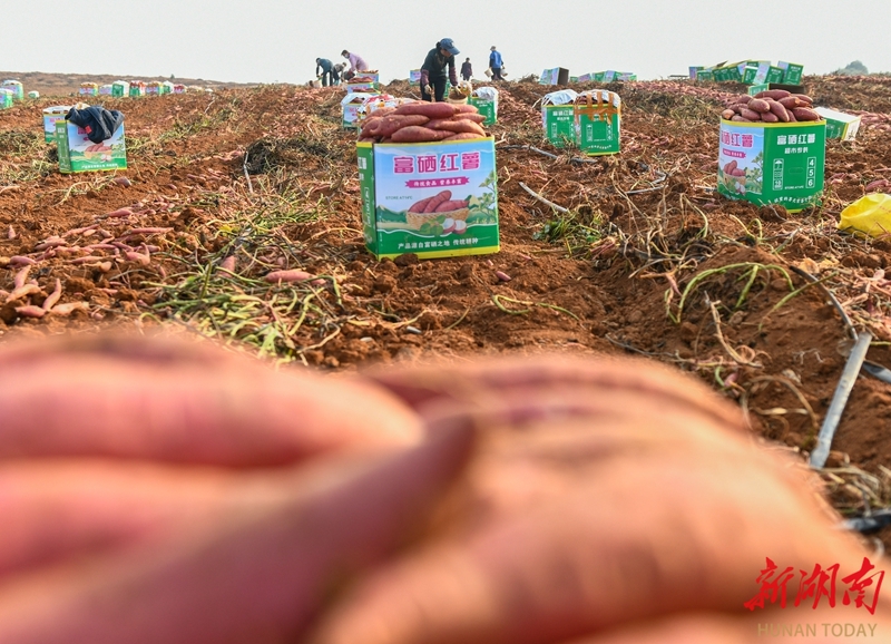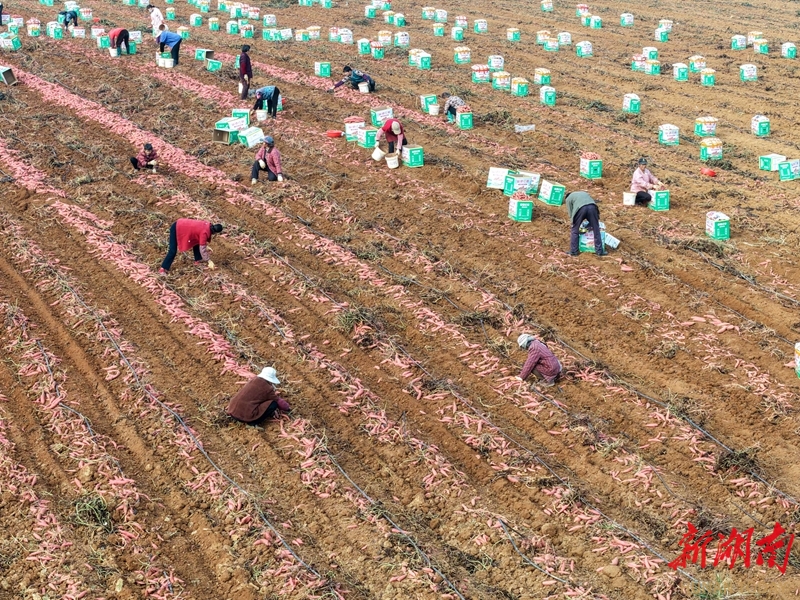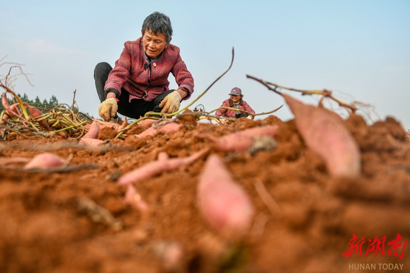 12月7日,道县祥霖铺镇洞尾村,农民在采收红薯。当天是大雪节气,各地农民抢抓农时,有序开展冬季农业生产。 蒋克青 摄(湖图片库)