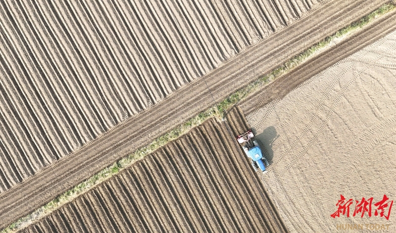 12月7日,江永县潇浦镇接龙桥村,农民操控农机翻耕田地。当天是大雪节气,各地农民抢抓农时,有序开展冬季农业生产。田如瑞 摄(湖图片库)