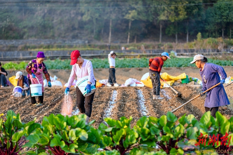 12月7日,吉首市乾州街道西门口村,农民在田间翻地、施肥。当天是大雪节气,各地农民抢抓农时,有序开展冬季农业生产。 彭璟 摄(湖图片库)