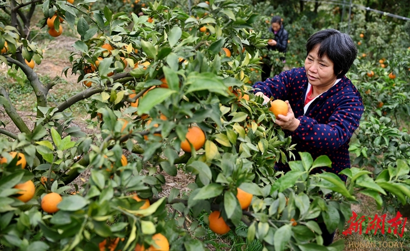 12月7日,洞口县毓兰镇杨柳村,农民在采收柑橘。当天是大雪节气,各地农民抢抓农时,有序开展冬季农业生产。滕治中 摄(湖南图片库)