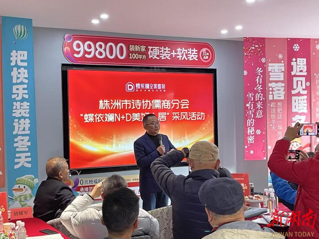 湖南日报·新湖南客户端12月8日讯(通讯员 赵三星)诗商融合,共绘美好人居新画卷!12月7日,株洲市诗词协会儒商分会骨干会员走进蝶依斓公司,开展“N+D美好人居”主题采风活动。协会艺术大咖们齐聚一堂,以诗词书画为媒介,共同探讨理想人居的诗意表达与实践路径。