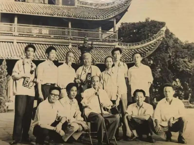 蒋兆和(1904—1986,前排中)与随行人员及岳阳楼工作人员合影