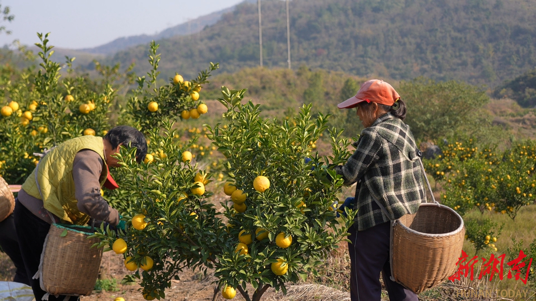 湖南日报·新湖南客户端12月8日讯(通讯员 杨森)7日,中方县花桥镇火马塘村的黄金贡柚种植基地内,浓郁的果香裹挟着山野的清新扑面而来。300多亩种植园里,金黄圆润的贡柚沉甸甸地挂满枝头,在冬日暖阳下泛着诱人光泽。果农们身背竹篓,穿梭在果树间娴熟采摘,一幅硕果满枝、农忙丰收的喜人画卷在田间地头徐徐展开。