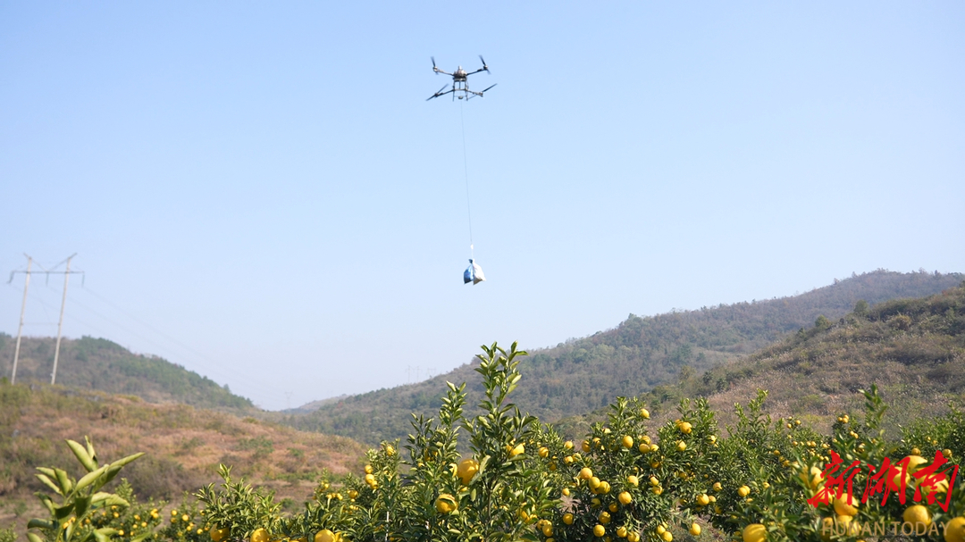这片贡柚基地于2019年完成建园,去年正式投产,今年产量实现成倍增长,从去年的15 万斤跃升至 30 万斤。为高效完成摘运任务,基地今年引入了 “得力帮手”—— 无人机参与采收,极大提升了作业效率。