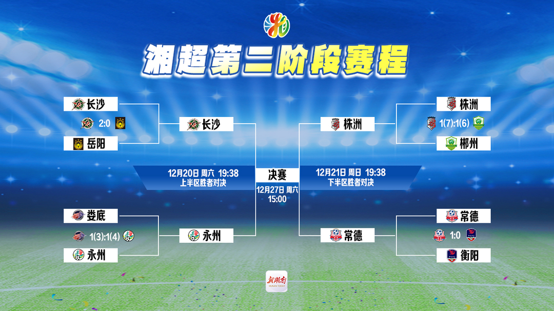 2.常规赛第二名株洲队对阵第七名郴州队的比赛时间调整为12月14日19:38进行,同一半区第三名常德队对阵第六名衡阳队的比赛时间调整为12月14日15:00进行。