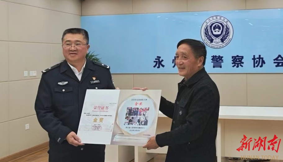 新湖南客户端12月8日讯(通讯员 李顺萍)12月8日,湖南省民俗摄影协会开展“送奖上门”活动。协会副主席胡立强受主席团委托,专程赴永州将荣获“中华杯”全国摄影大赛金奖的《老有所为展风采》组照样本及《新时代新摄影》杂志出版的获奖作品画册,送至作品主人公——永州市公安局离退休老同志手中。