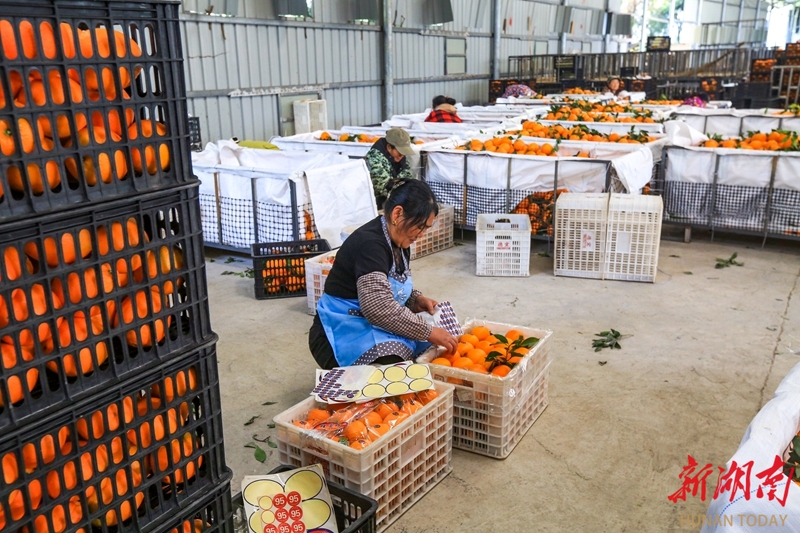 12月7日,龙山县里耶镇比耳村,果农在装运里耶脐橙。趁着连日晴好天气,当地果农加紧对里耶脐橙进行采摘、分级、包装,确保新鲜优质的果实及时供应市场。曾祥辉 摄(湖南图片库)