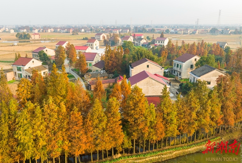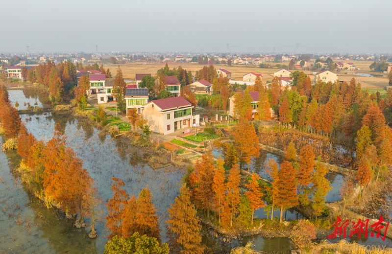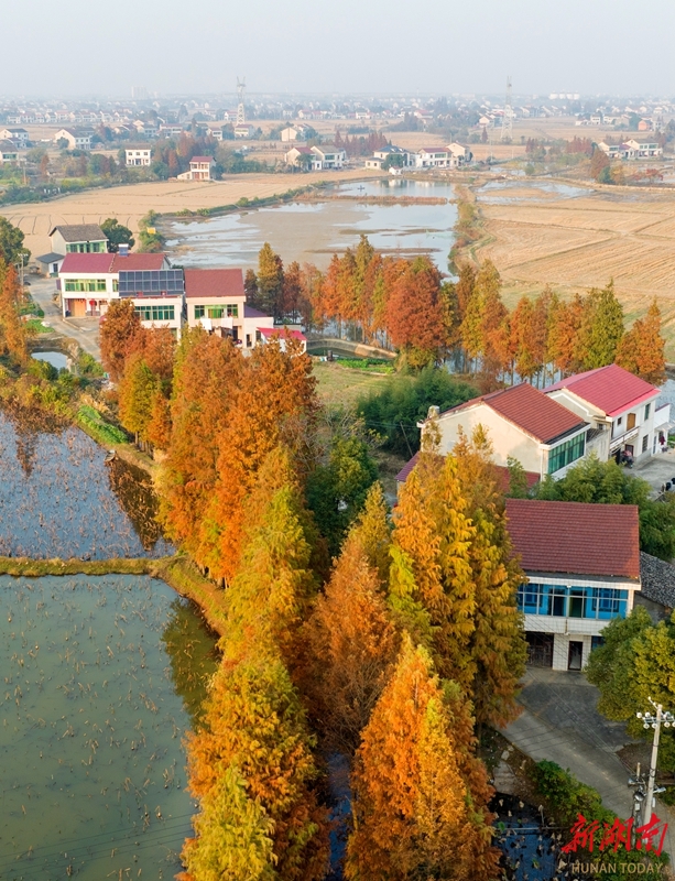 12月8日,益阳市赫山区兰溪镇千家洲村,多彩水杉与民居、水田相映成趣,勾勒出冬日里最动人的乡村图景。近年来,该区持续改善水环境和人居环境,全面推进美丽乡村建设,绘就生态宜居新图景。湖南日报全媒体记者 李健 摄