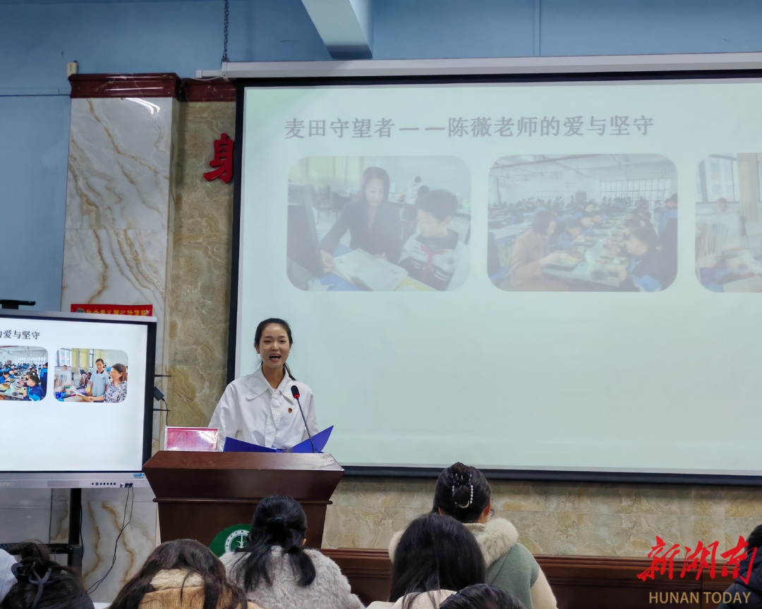 长郡云龙实验学校殷翠纯老师三十年深耕教坛,以爱心陪伴特殊孩子、留守儿童成长,诠释师者坚守;杉木塘小学杨丹荣老师将“立德树人”融入校园日常,用课堂引导与课后陪伴践行教育初心;云田学校刘洁老师分享了陈薇34年守望童心、郭娟红28年深耕乡村教育的前辈故事,传递奉献担当的精神。