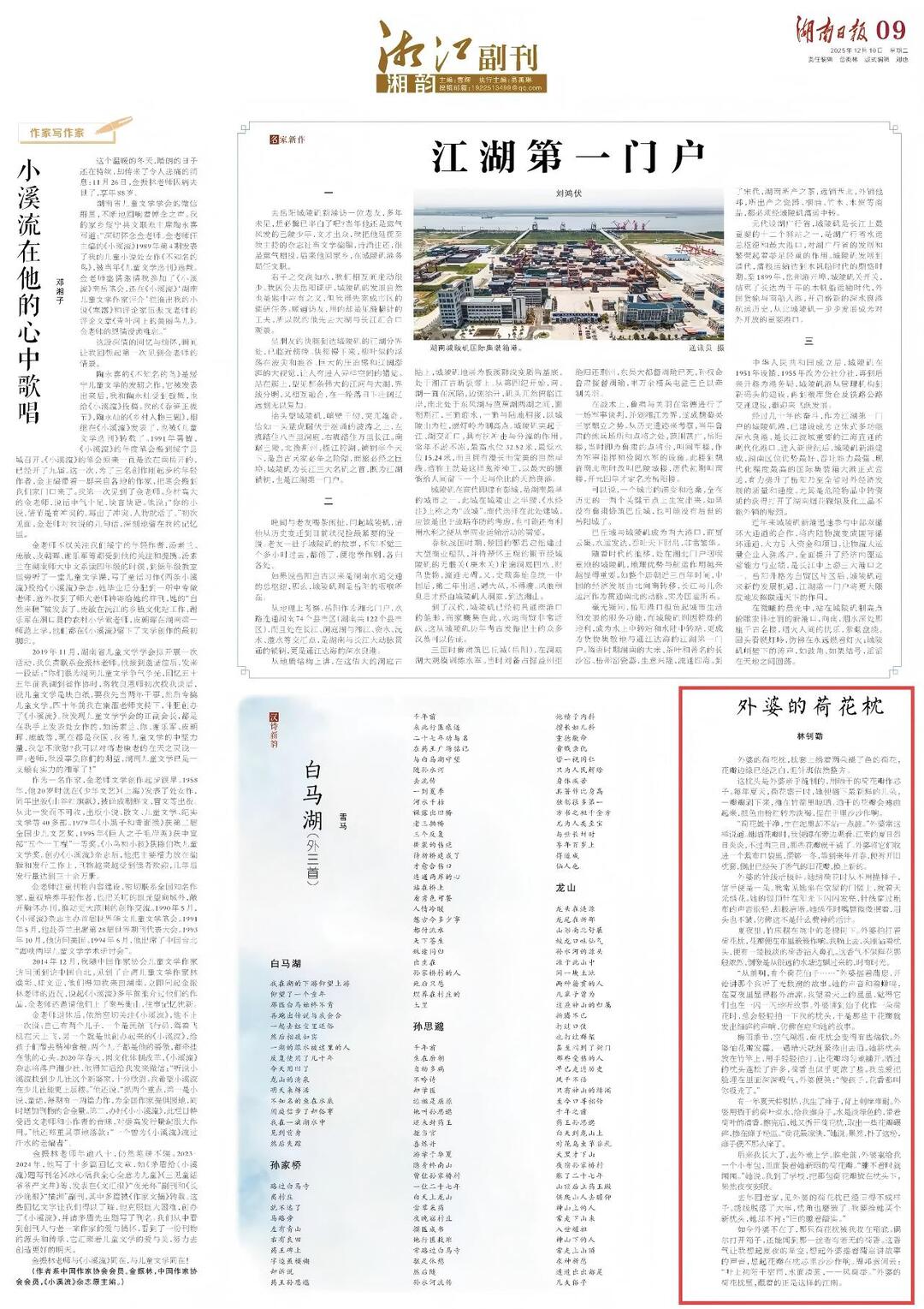 如今外婆不在了,那只荷花枕被我收在箱底。偶尔打开箱子,还能闻到那一丝若有若无的荷香。这香气让我想起夏夜的星空,想起外婆摇着蒲扇讲故事的声音,想起花瓣在枕芯里沙沙作响。周邦彦词云:“叶上初阳干宿雨,水面清圆,一一风荷举。”外婆的荷花枕里,藏着的正是这样的江南。
