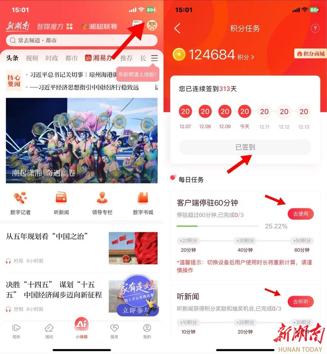 下载并打开“新湖南”APP,您可以通过每日签到、阅读新闻、完成指定任务等方式免费获取积分,拿到预言家入场券!
