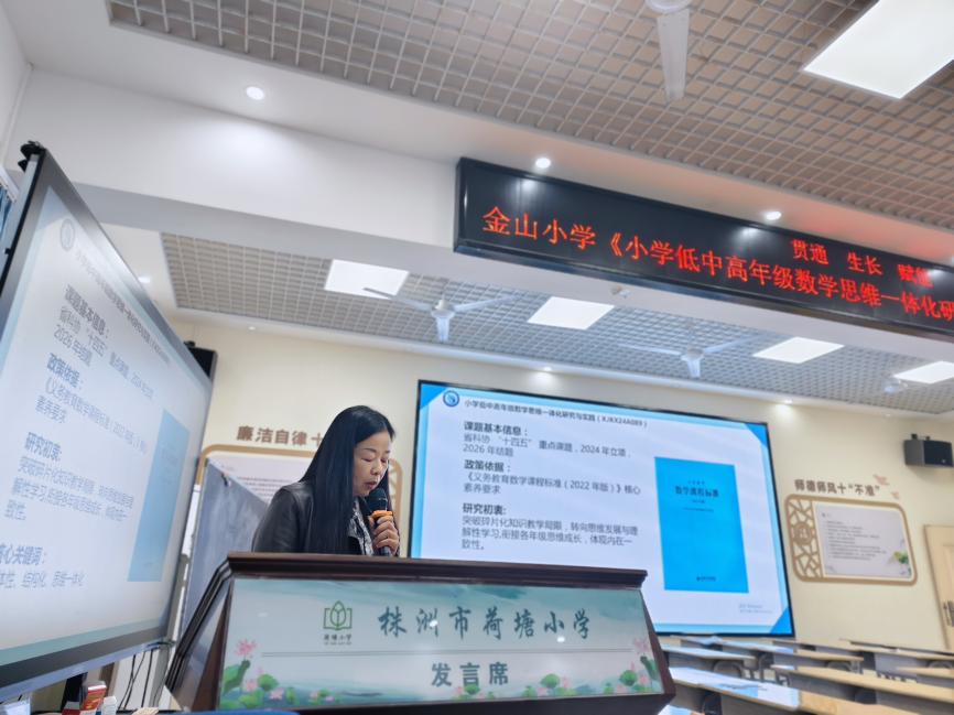 湖南日报·新湖南客户端12月10日讯(通讯员 杜丽)12月9日,荷塘区金山小学成功举办了《小学低中高年级数学思维一体化研究与实践》课题(课题编号:XJKX24A089)中期展示活动。此次活动不仅是一场阶段性成果汇报,更是一次深度探讨数学教育改革的契机,旨在通过理论与实践的结合,推动小学低、中、高年级数学思维的连贯性与系统性发展。