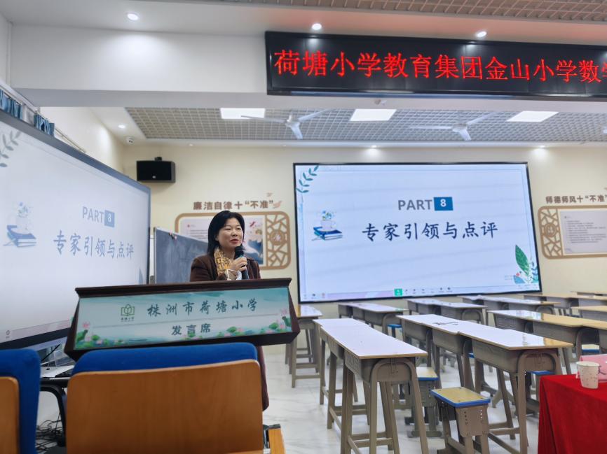 活动特邀株洲市教科院副院长丁文平、教育发展室主任黄怀清、小学数学教研员谭志俐,荷塘区教育教学研究指导中心副主任赵腾达、小学数学教研员李瑜,荷塘小学校长王杰、党总支书记黄英,荷塘小学教育集团成员校领导、以及芦淞区龙泉小学党支部专职副书记吕媛参与指导。同时,西藏自治区山南市扎囊县扎塘镇小学驻荷塘小学跟岗培训的管理团队也受邀出席,彰显了跨区域教育交流的广度与深度。活动由金山小学教研主任陈聪主持。