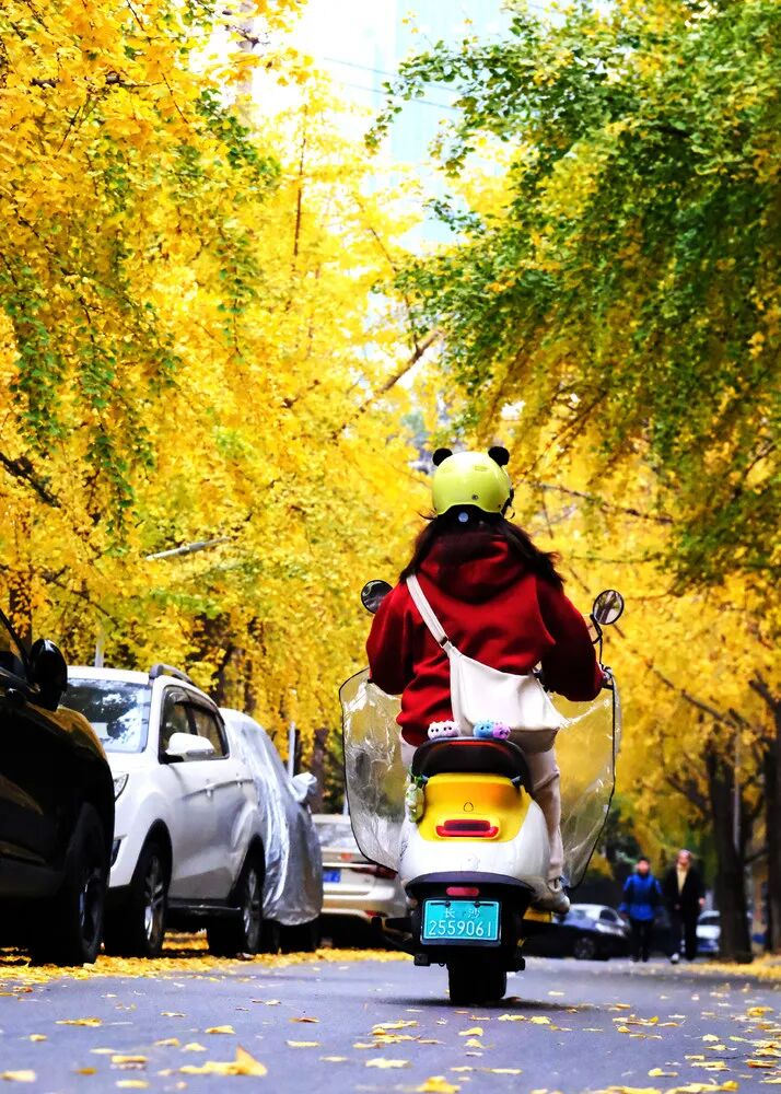 某小区庭院,银杏叶铺就黄金地毯。(摄|林道辉)