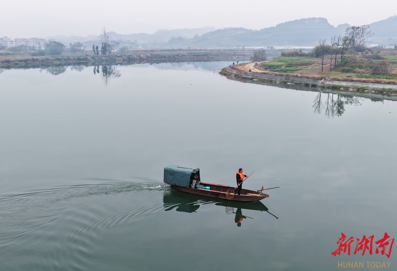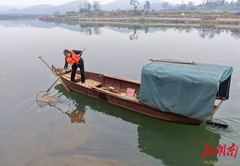 12月10日,嘉禾县坦坪镇凌云村,党员志愿者在河道打捞漂浮物。近年来,该县全面建立“河长制”,对河道保洁实行常态化管理,确保水清河畅、岸绿景美,营造了良好的水生态环境。黄春涛 摄(湖南图片库)