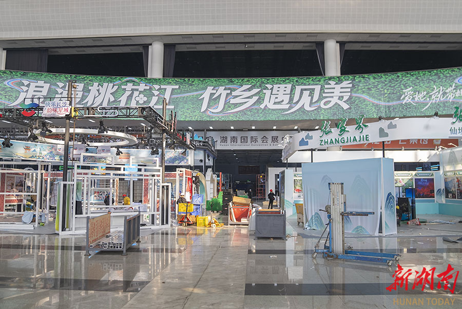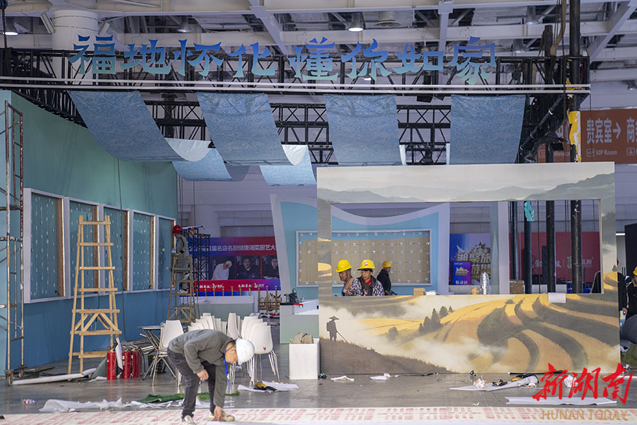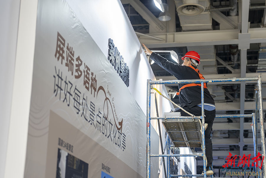 12月11日,工作人员正在布展。2025湖南文化旅游产业博览会暨首届“12.12”文旅消费购物节将于12月12日至14日在湖南国际会展中心(芒果馆)举行,一场集视觉、体验、味觉与惊喜于一体的文旅盛宴即将开启。 湖南日报全媒体记者 童臻熙 摄