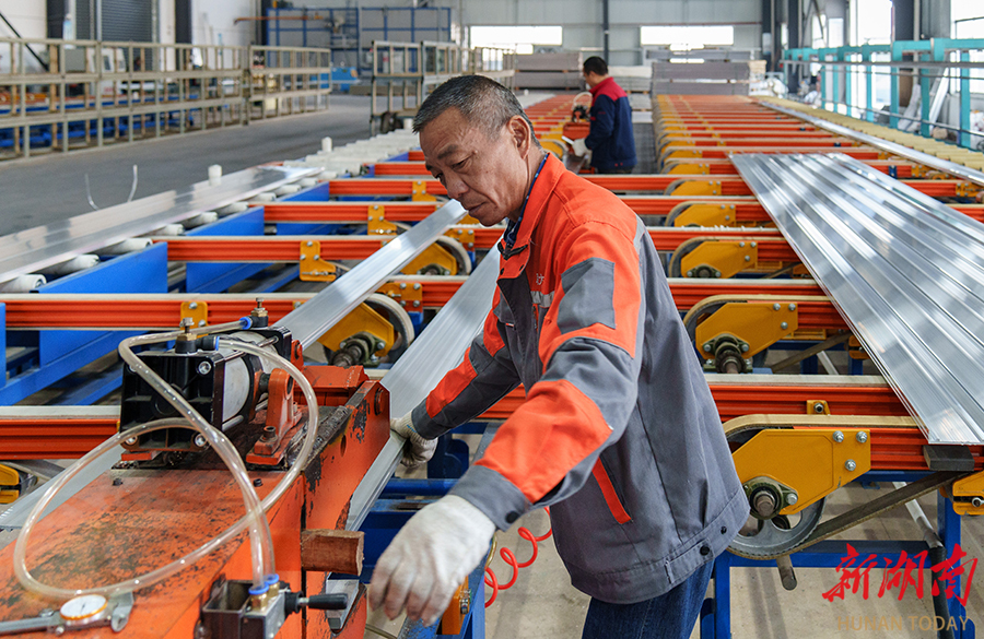 12月11日,永州市冷水滩区联大铝业有限公司生产车间,工人在加紧赶制铝材料订单。 临近年底,园区企业纷纷开足马力赶制订单,确保完成全年生产任务,推动工业经济稳步发展。 雷中祥 摄(湖南图片库)