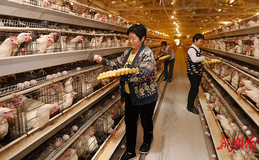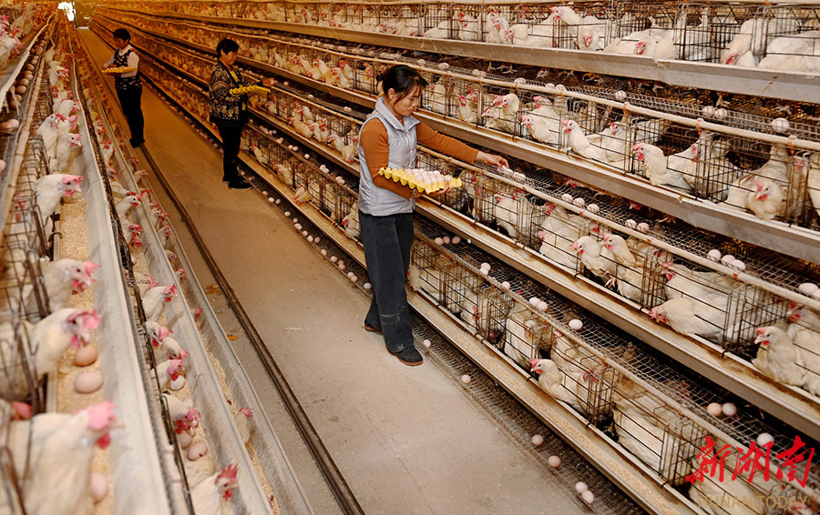 12月11日,洞口县花园镇新兴村养鸡场,农民在收捡鸡蛋。近年来,该县通过提供技术指导和销售服务等举措,推动养殖业规模化发展,有效促进农民增收。 滕治中 摄(湖南图片库)