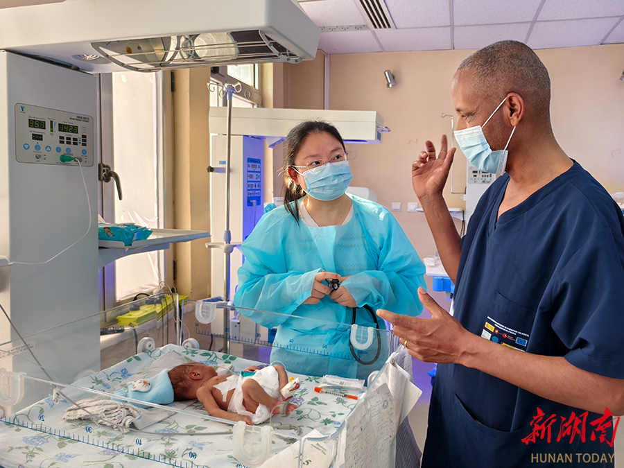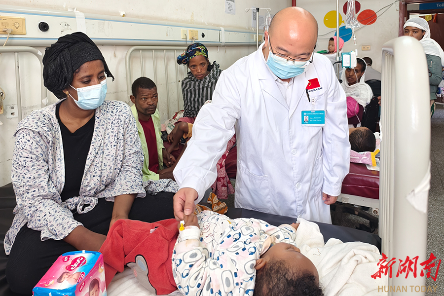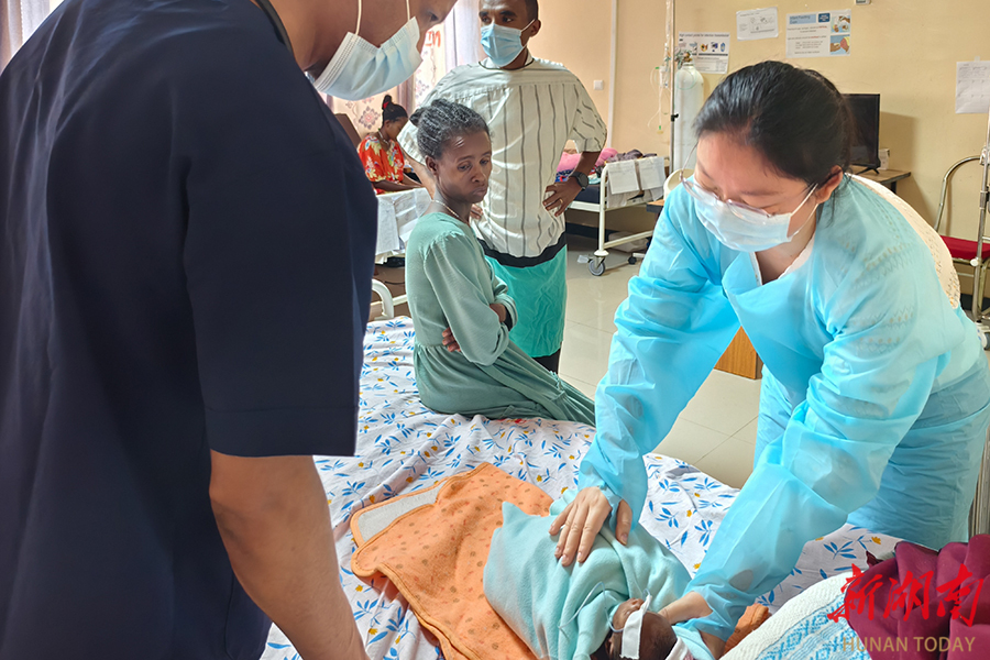 12月8日,埃塞俄比亚,专家团成员在临床一线提供床边指导。近日,由中华人民共和国商务部主办、湖南省儿童医院承办的“埃塞俄比亚妇产科儿科能力建设海外培训班”举办。培训班采用“理论授课+技能实操+案例研讨+临床带教”相结合的模式,促进中埃在妇幼健康领域的可持续发展合作,推动中非卫生合作迈向更可持续、更高水平的发展。丁向 摄(湖南图片库)