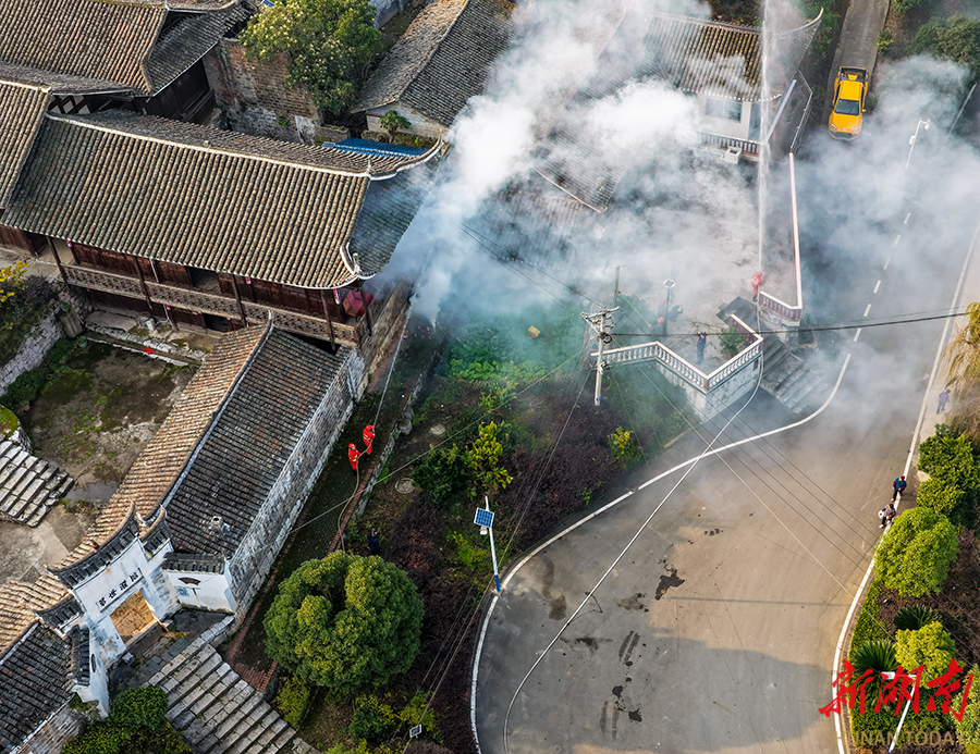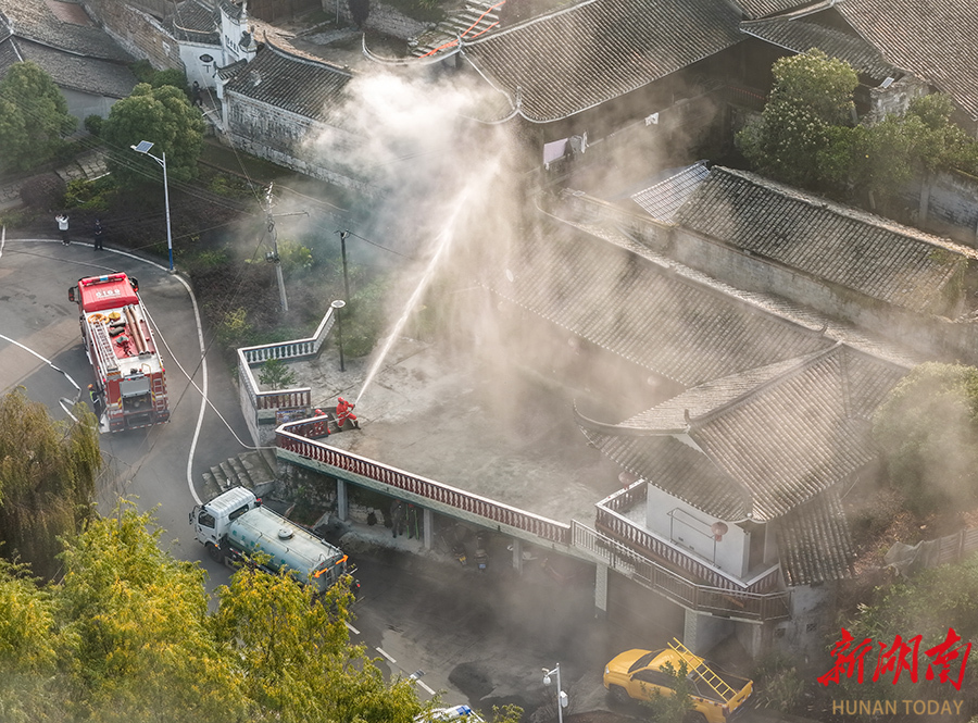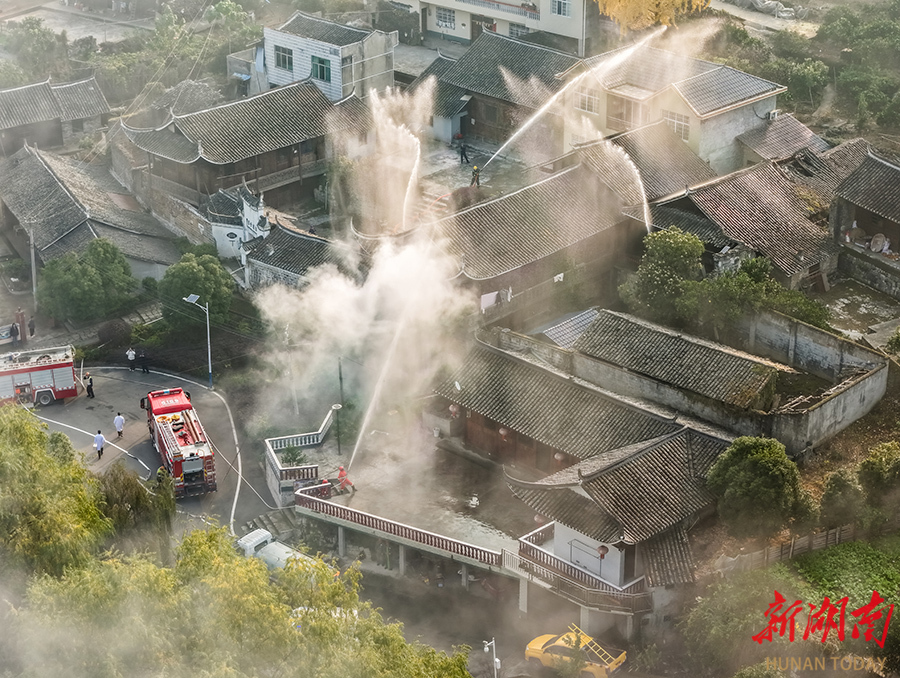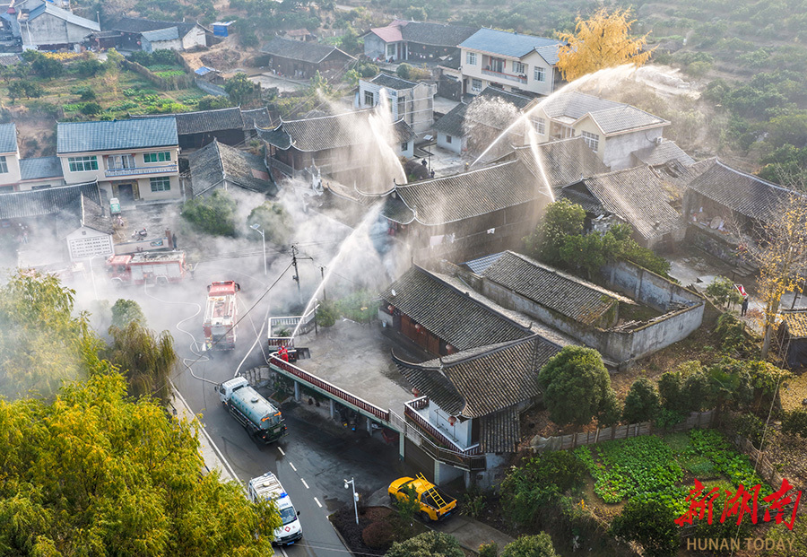 12月11日,洪江市黔城镇茶溪村,洪江市消防救援大队联合属地乡镇、卫健、电力、城管等单位联合开展农村团寨消防安全大演练。通过演练,多部门协同检验应急反应与处置能力,切实提升农村消防安全保障水平。 胡浩 摄(湖南图片库)