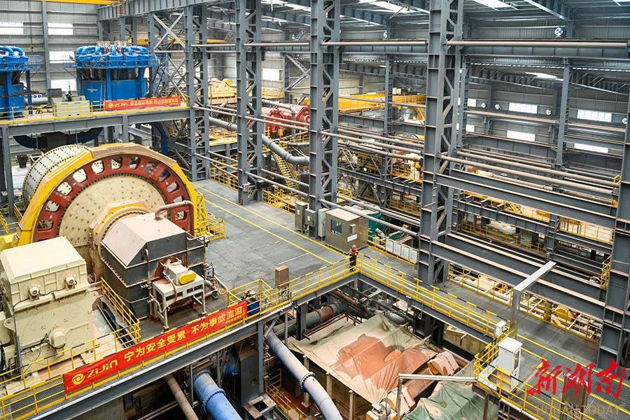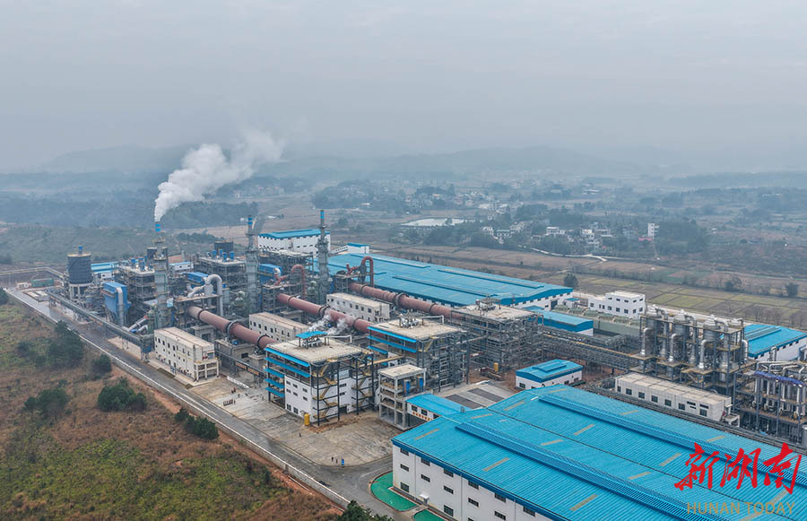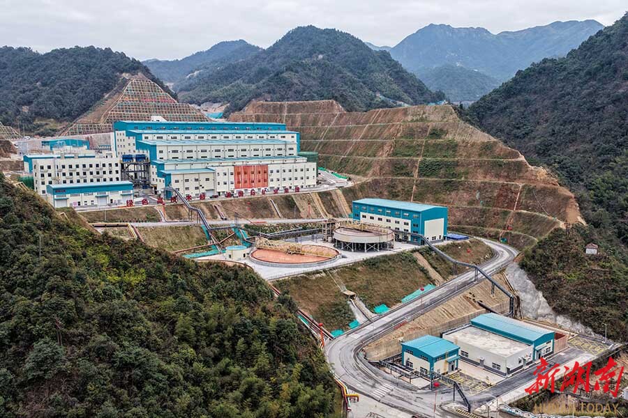 12月10日,俯瞰道县洪塘营瑶族乡湖南紫金锂业有限公司湘源锂多金属矿500万吨/年采选项目。当天,湖南紫金锂业湘源锂多金属矿采选冶一体化项目在道县点火投产。该项目总投资约130亿元,由湖南紫金锂业有限公司建设湘源锂多金属矿500万吨/年采选项目、湖南紫金锂多金属新材料有限公司建设3万吨/年电池级碳酸锂项目形成上下游协同的产业链。项目达产后,采选冶一体可实现年产值约60亿元。蒋克青 摄(湖南图片库)