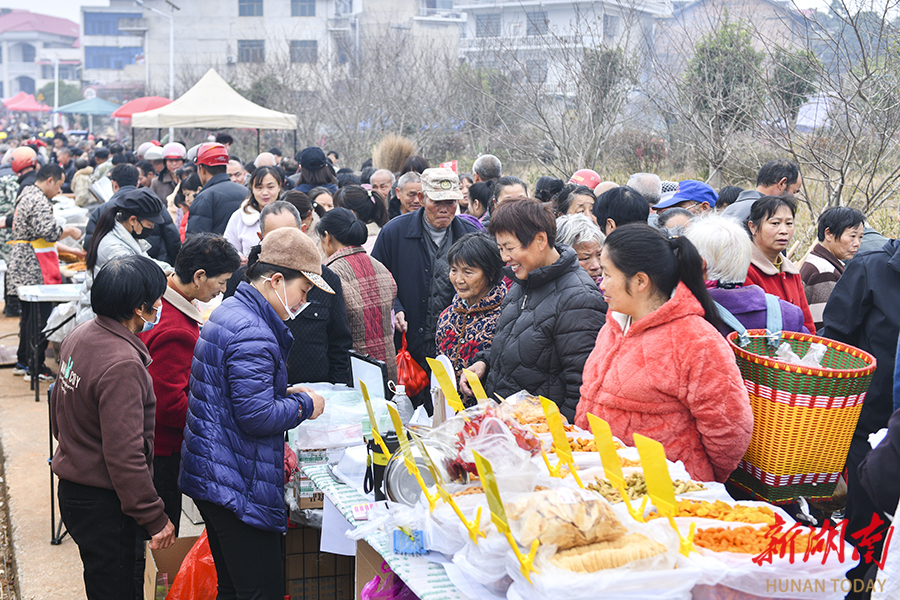12月12日,娄底市娄星区蛇形山镇秋湖村第四场赶集热闹开市。200余个摊位展销村民自产农产品,通过“从田间地头到摊位”模式方便群众生活,拓宽增收渠道。该集市自11月27日首次开办以来持续火爆,探索出一条农文旅融合、促进增收的新路径。 吴永华 摄(湖南图片库)