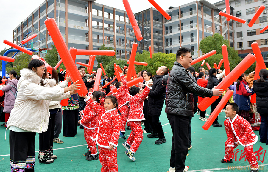 12月13日,吉首市第十三幼儿园,家长和孩子们在参与《七彩空气棒》游戏。当天,该园举办“聚民族团结情·传民族非遗韵”亲子运动会,孩子们通过趣味游戏感受传统文化,在欢乐互动中增进亲子情感,促进健康成长。 姚方 刘丹 摄影报道(湖南图片库)