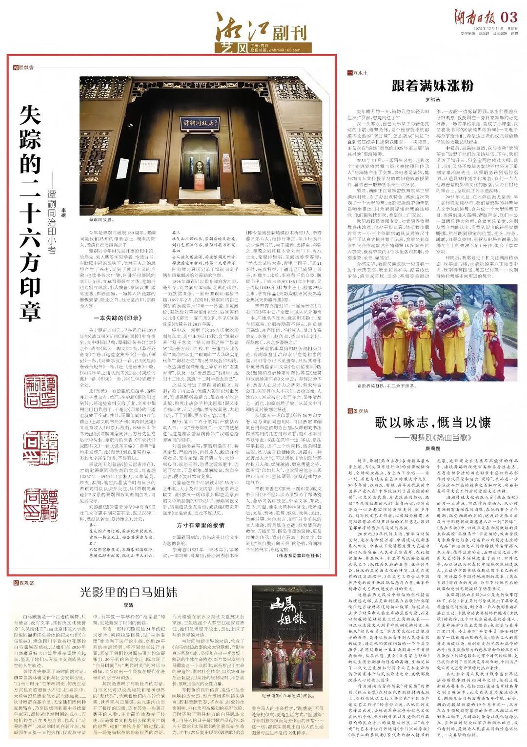 谭嗣同曾在《寥天一阁印录》跋文中引用《华严经》,认为圣贤为了帮助别人,会学习各种技艺。所谓文字、算数、图书、印玺、地水火风种种诸论,咸所通达;文笔、赞咏、歌舞、妓乐、戏笑、谈说,悉善其事。对他而言,治印并非单纯的文人雅趣,而是修身立德、抒发情怀的载体。刀锋所至,既是笔墨的延伸,更是精神的传承。镌刻在石章上的文字,如同他“我自横刀向天笑”的绝唱,将湖湘子弟的气节,永远定格。