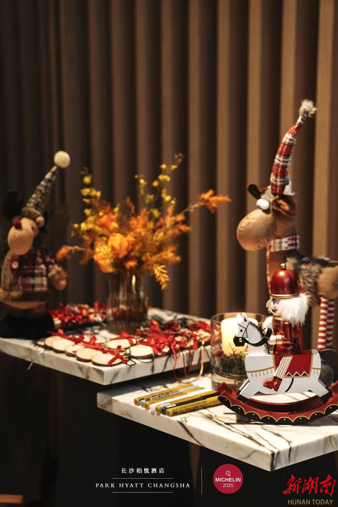 伴随着最后一针落定,一幅完整的圣诞湘绣画作惊艳亮相,将非遗工艺的当代魅力定格于此。在所有人的共同期待与倒数声中,酒店圣诞树及室外灯光瞬间被点亮,湘绣织线幻化成璀璨光影与温馨的节日彩灯交相辉映,随着艺术之光的点亮与米其林星钥的加冕,长沙柏悦酒店正式开启圣诞节日季。